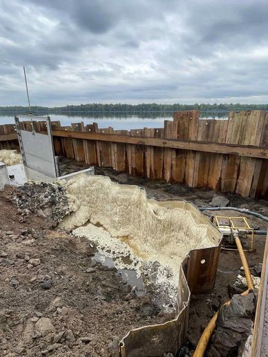 Following completion of the process and removal of the main sheet piling, the dam was thoroughly tested and demonstrated zero water intrusion, effectively mitigating the risk of millions of dollars in potential damage to the roadway and surrounding cranberry bog operations. The total cost for the project was approximately $80,000, representing a fraction of the potential loss while providing a permanent, durable solution.
