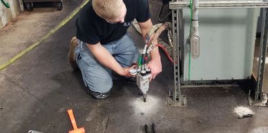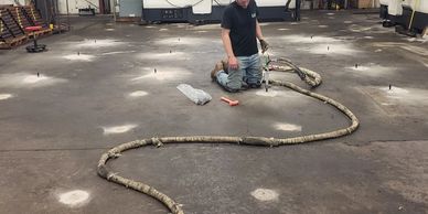 The concrete lifting company was called and the work was completed in 6 hours. Using the EliteOne gun and HMI’s 501 polyurethane foam the void was filled, which stabilized the concrete slab. 501 polyurethane foam was chosen for this job because it provides a slower reaction time and further spread. Due to the distance this foam can travel, 501 is excellent for undersealing and stabilizing joints on rocking slabs from slab curl. The same dial gauge test was performed after the foam was injected, and showed no deflection. The CNC’s were re-leveled and operations continued. The only alternative would have been to tear out, and replace the entire slab. Which would have affected production greatly. By choosing to fill the void, they were able to continue production immediately following the repair.