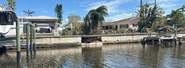 In June 2024, permeation grouting using HMI’s single component polyurethane foam was completed on the subject seawall just ahead of the hurricane season. When catastrophic Hurricanes Helene and Milton struck within a two-week period – producing storm surges that exceeded the wall’s height – the treated seawall held firm. Unfortunately, many neighboring untreated seawalls experienced catastrophic failures from soil loss near the bottom of the wall (as seen in photos). However, the treated seawall remained intact with no observable soil loss or wall movement.