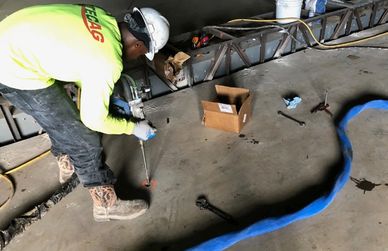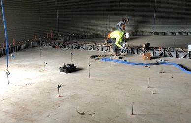 A four foot grid pattern of 106 points were used to install Hydrofoam 402 at a depth of 12-15 feet to stabilize the soil. Each injection point accepted 15-75 pounds of material as noted in the color-coded chart below. Using an injection gun, a total amount of 4,500 pounds of HF402 foam was incrementally installed into the soil to stabilize the subgrade. HF402 was chosen for stabilization due to the potential water present, strength and the ideal reaction profile for Deep foam injection.